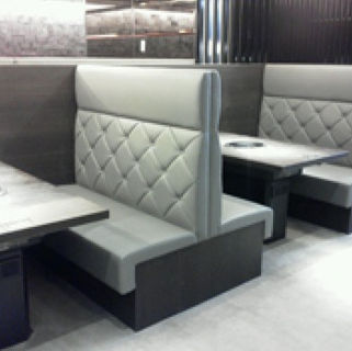 現場に合わせたサイズ、デザインで店舗写真から店舗用ソファーを設計・製作致します。